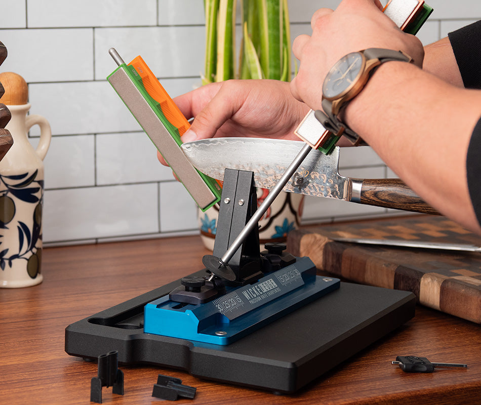 - Redesigned Standard Vise allows easier clamping on fully flat ground and distally tapered blade styles frequently found on kitchen and pocket knives.
